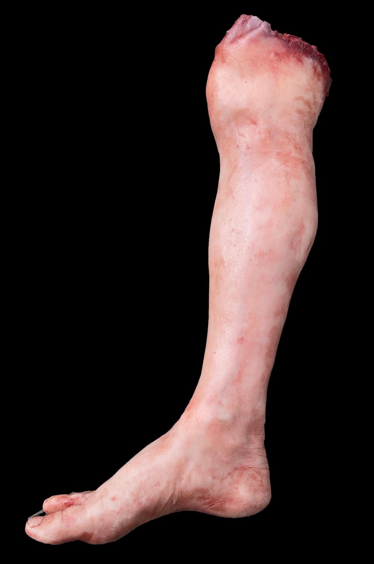 This male right leg is silicone skinned with a foam core in the upper part and the foot is solid silicone. Film ready and highly detailed this is a great addition to your film project, haunt or collection of oddities.  All items are made to order to ensure each piece is unique and one of a kind. Scarring and skin tone may vary.