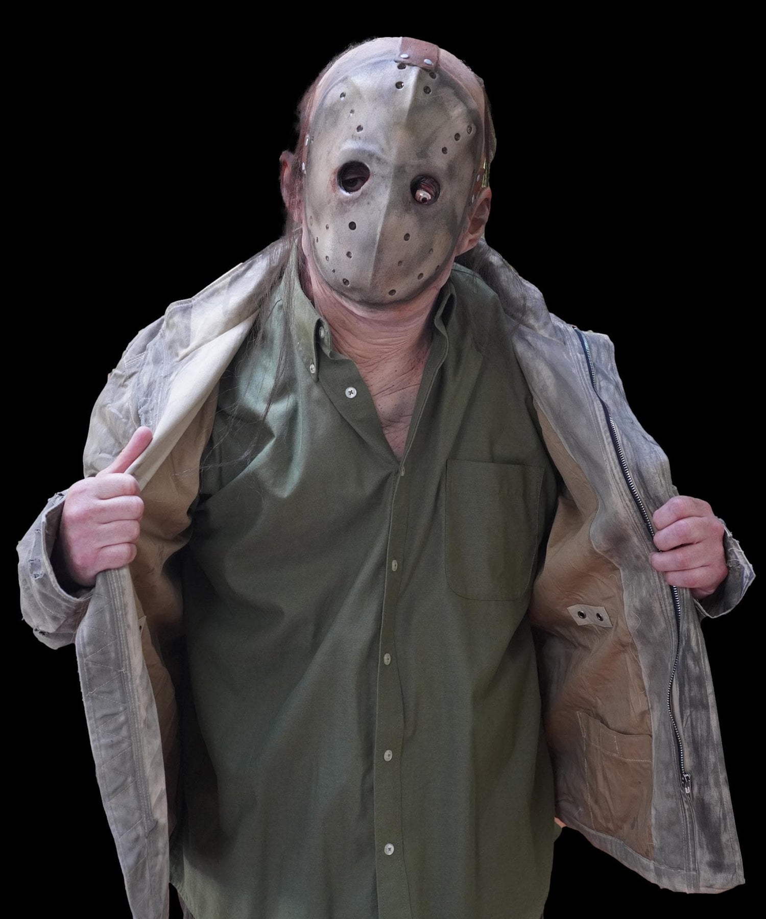 Mask and green button-down sold separately. Jacket ONLY. This jacket will fit a person from 180 pounds to 220 pounds.