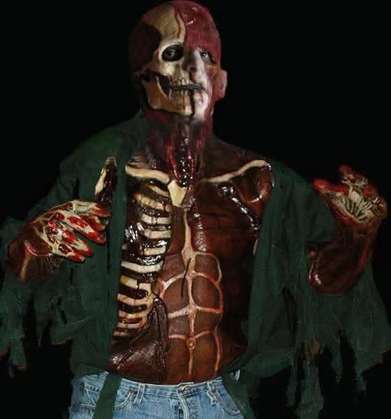 Some demons rise from the grave, after spending hundreds of years in a peaceful slumber. Others reanimate right on the Autopsy table, and take a chomp out of the doctor's arm before scurrying out the door. They were still trying to figure out what killed this poor slouch when he joined the ranks of the living undead. Sliced up by a scalpel and oozing fresh blood and guts, he may be less rotted and decayed than the rest of the horde, but his bite is just as powerful and infectious. The Autopsy Zombie Halloween costume is sure to terrify that passing hayride this season. Hand painted and detailed by the inspired (and slightly demented) artists and craftspeople at The Horror Dome, this movie-quality costume offers a seamless, realistic look. Join up with friends and roam the neighborhood as a legion of walkers, or hide in the bushes and scare the socks off passing trick or treaters.