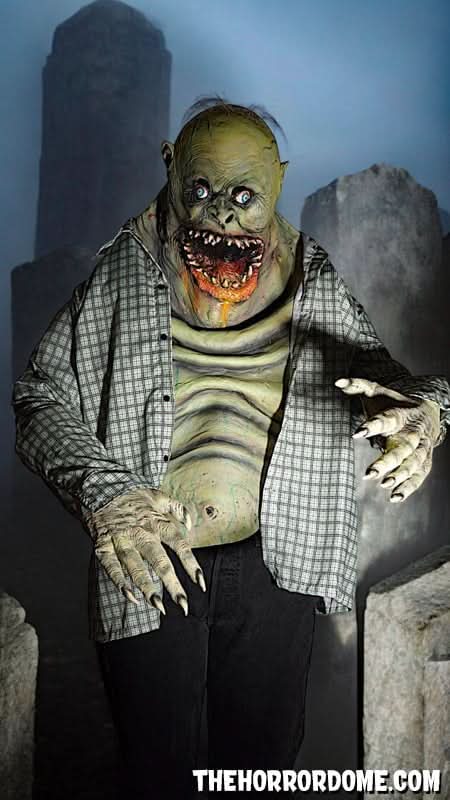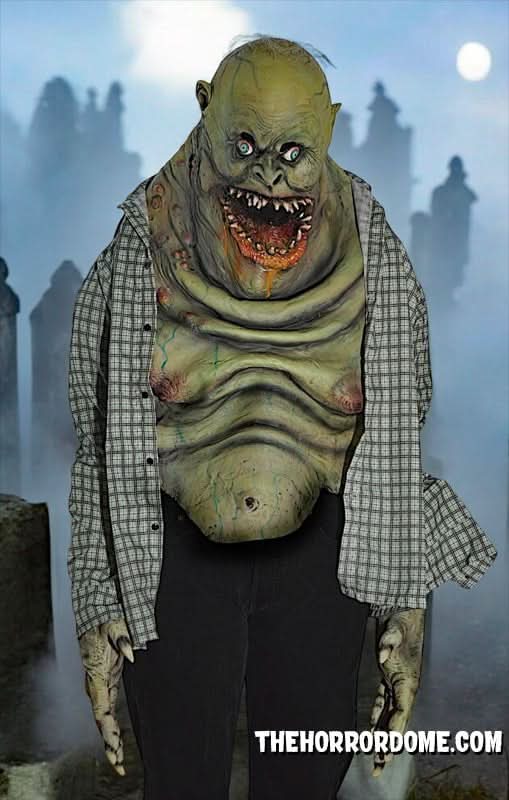 Risen from the dead and hungry for a meal, this lumbering lard-o is on the hunt for juicy human brains and fatty flesh. With monstrous hands, there's no escaping his deadly grasp. Infected by the zombie plague, our slow-witted slob stumbles through town headed in the direction of your home. Run for your life, or fortify and fight? The choice is up to you. Either way, odds are high you'll soon be infected too. The Infected Zombie Halloween costume is a unique Horror Dome original. He's a fantastic character for any haunted house scene that depicts an invasion of the undead. Team up with friends dressed in other zombie suits, or lurk alone in the bushes and give the neighborhood kids the fright of their life. Masterfully crafted from choice materials, this quality costume is hand painted and detailed for an unsettling realistic look. Stalk the streets this year, dressed as a bloodthirsty brute.